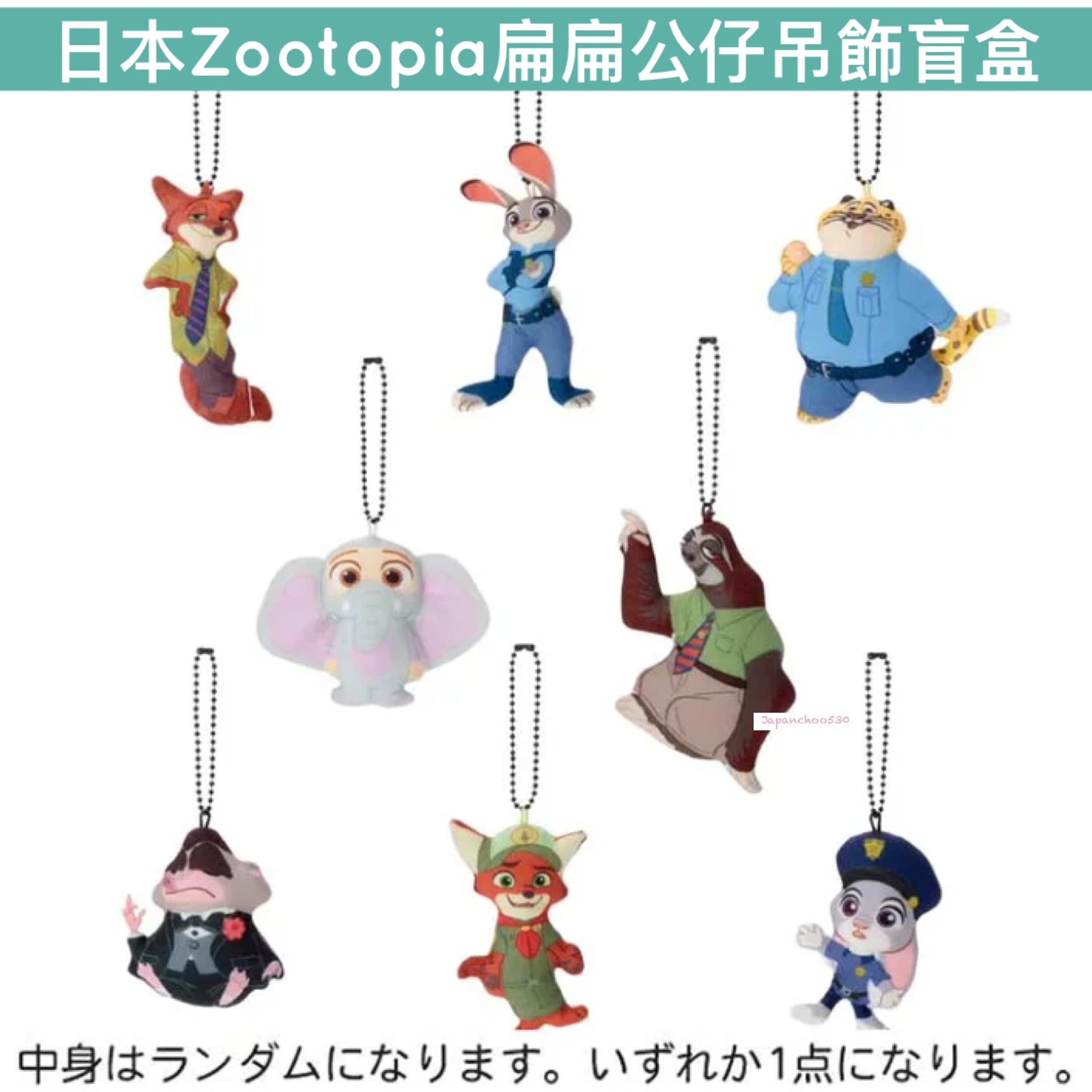 日本預訂📍日本Zootopia扁扁公仔吊飾盲盒