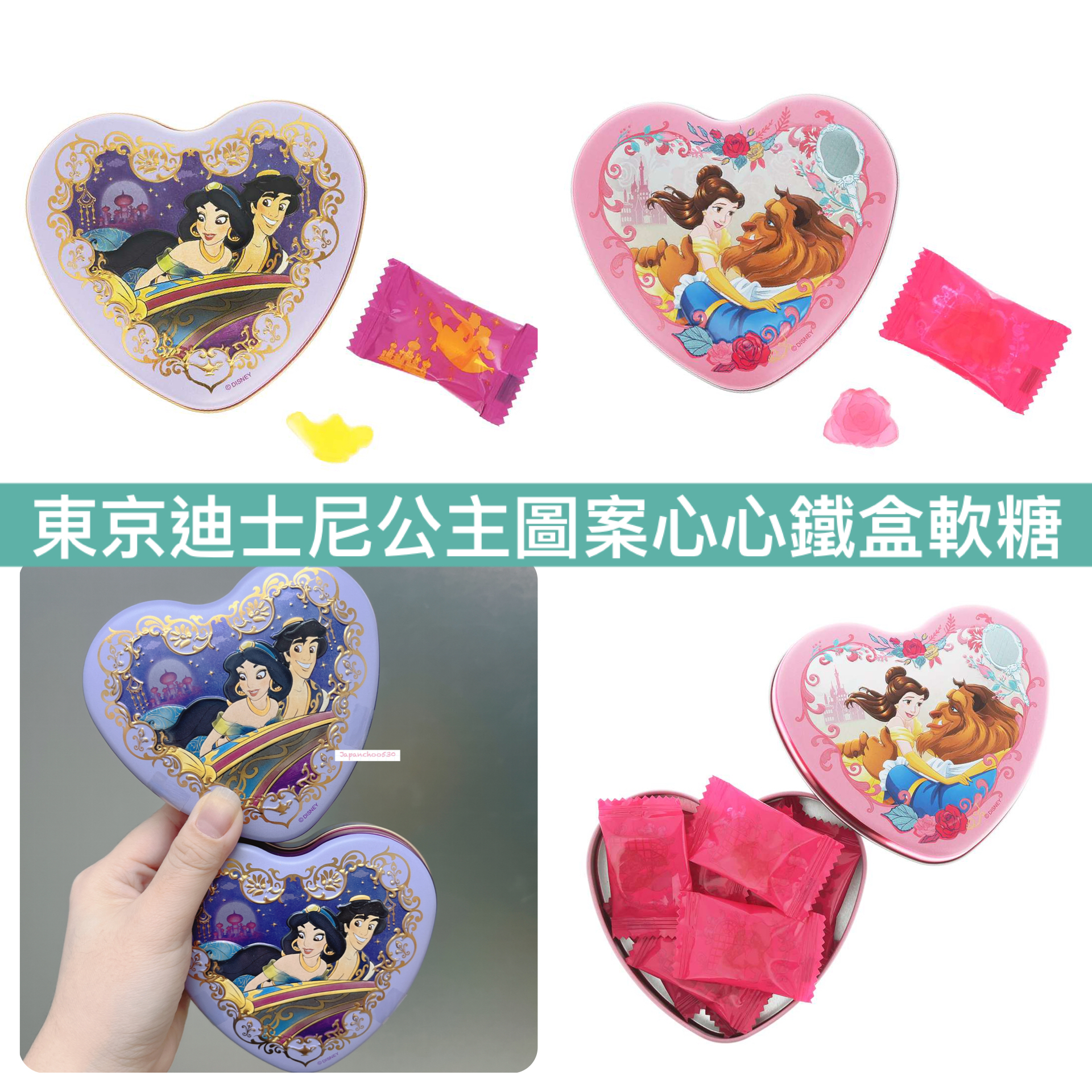 日本現貨/預訂📍東京迪士尼公主圖案心心鐵盒軟糖