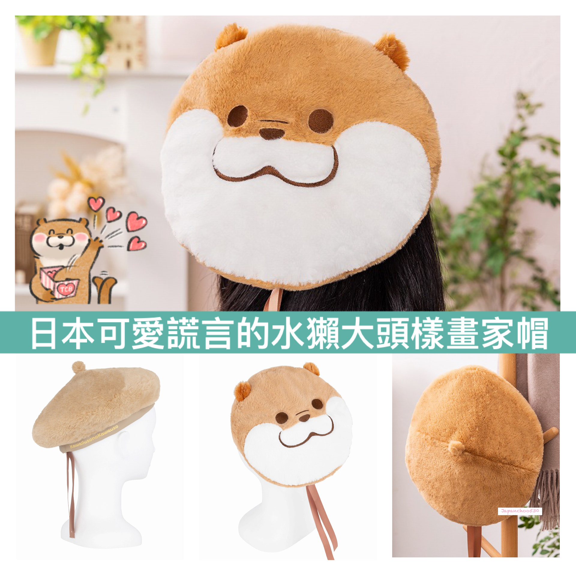 日本預訂📍日本可愛謊言的水獺大頭樣畫家帽