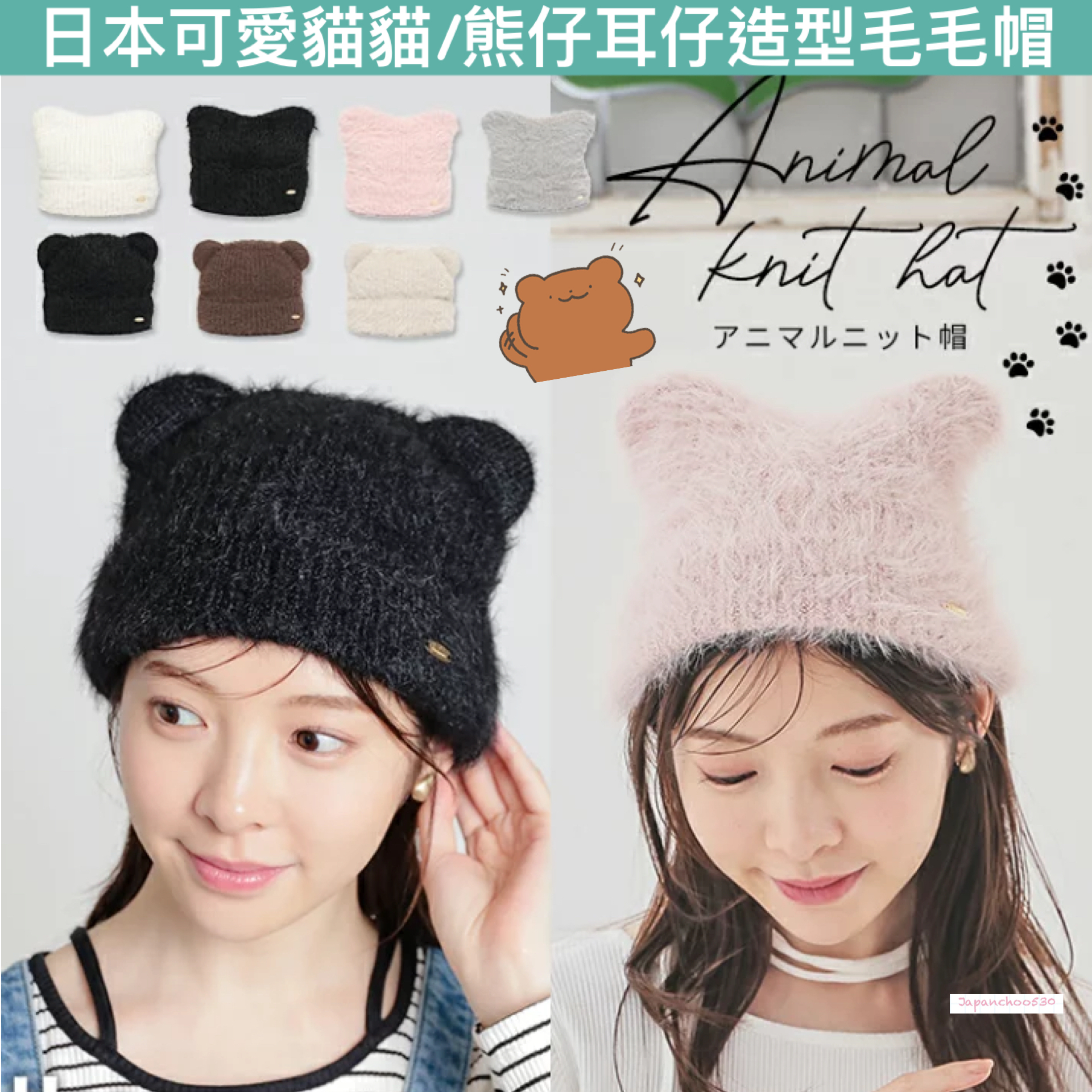 日本預訂📍日本可愛貓貓/熊仔耳仔造型毛毛帽