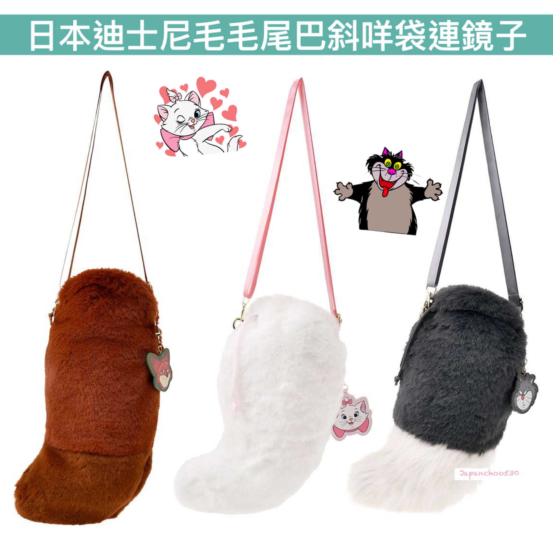 日本預訂📍日本迪士尼毛毛尾巴斜咩袋連鏡子 4/11日本開售