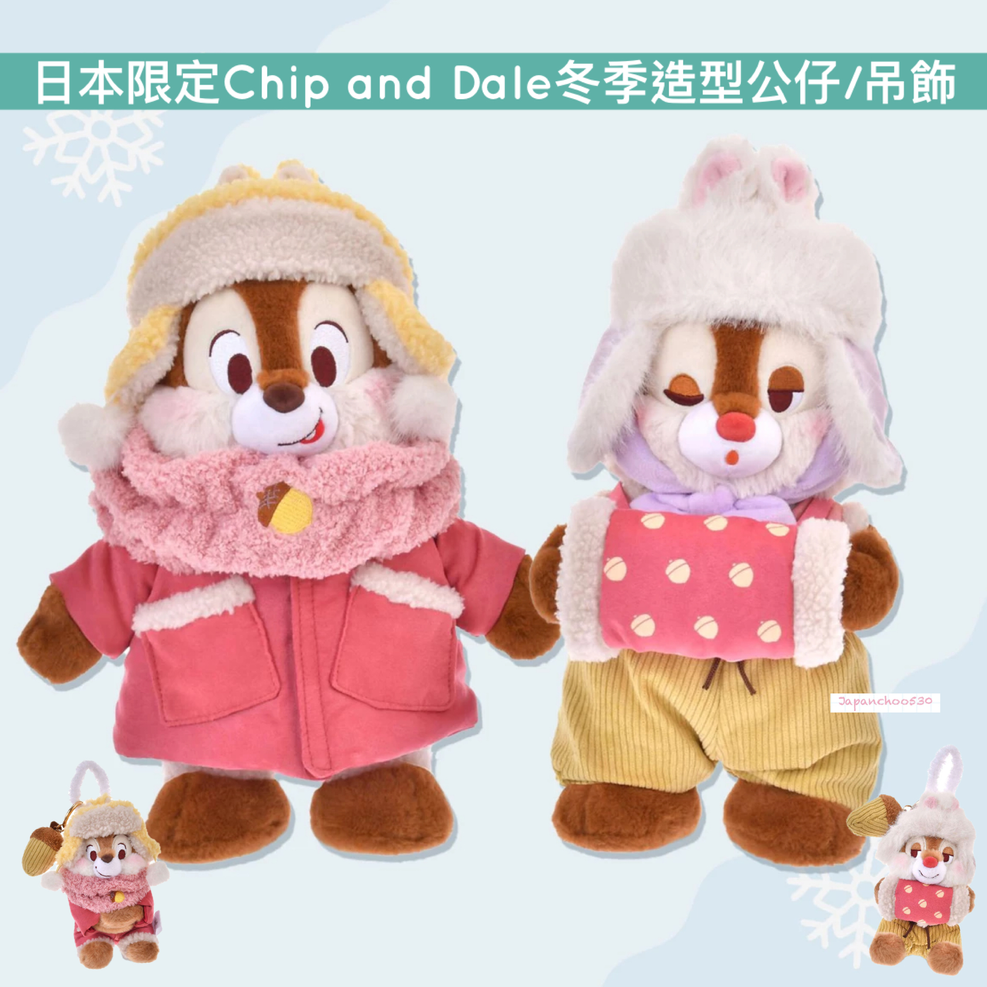 日本預訂📍日本限定迪士尼Chip and Dale冬季造型公仔/吊飾 7/11日本開售