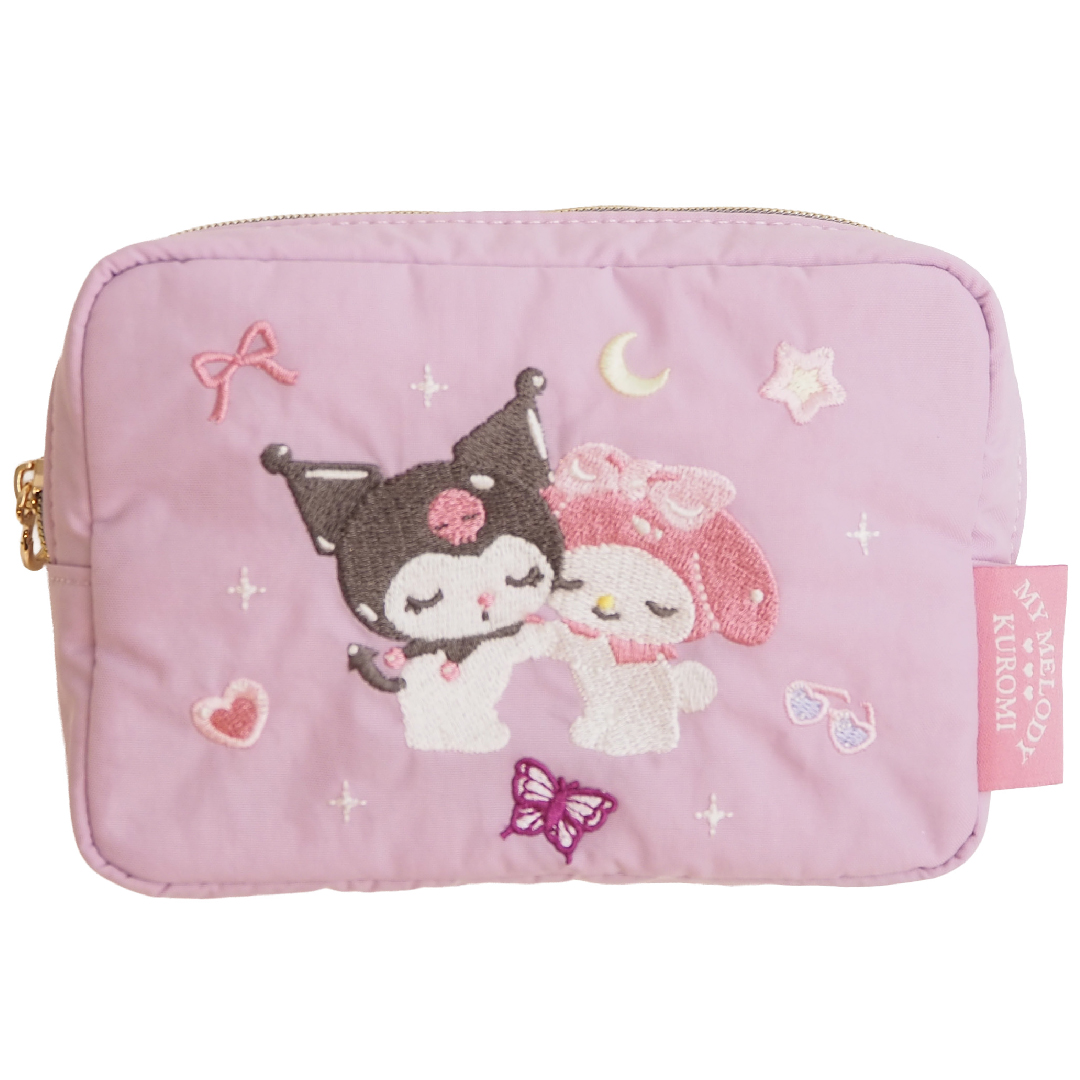 日本預訂📍日本限定Melody/Kuromi粉彩夢幻樂園系列 - 刺繡圖案化妝袋 2025年12月中旬出貨