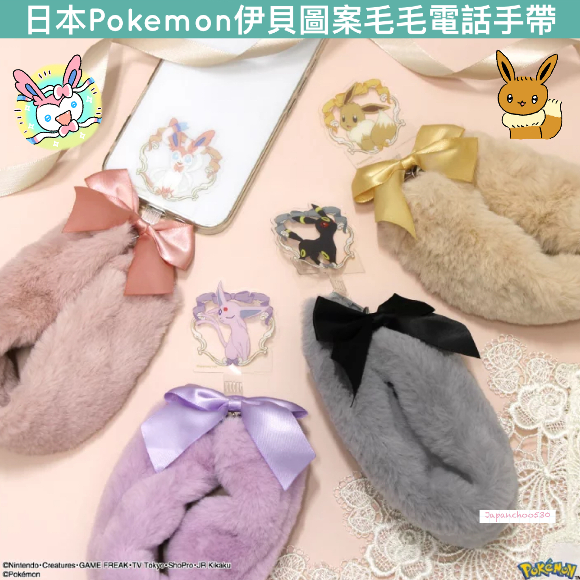 日本預訂📍日本Pokemon伊貝圖案毛毛電話手帶 2025年11月中旬出貨