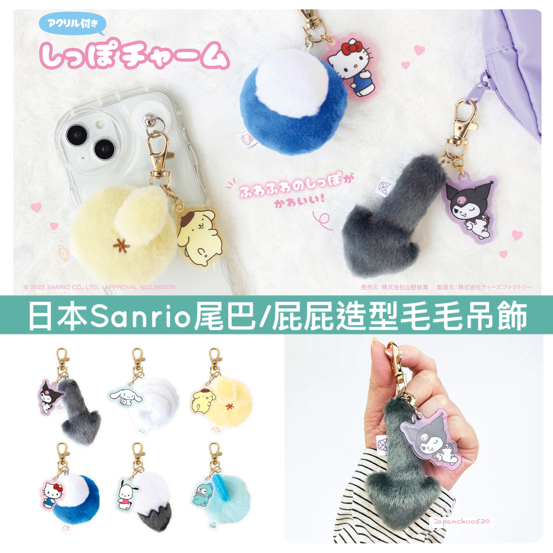 日本預訂📍日本Sanrio尾巴/屁屁造型毛毛吊飾