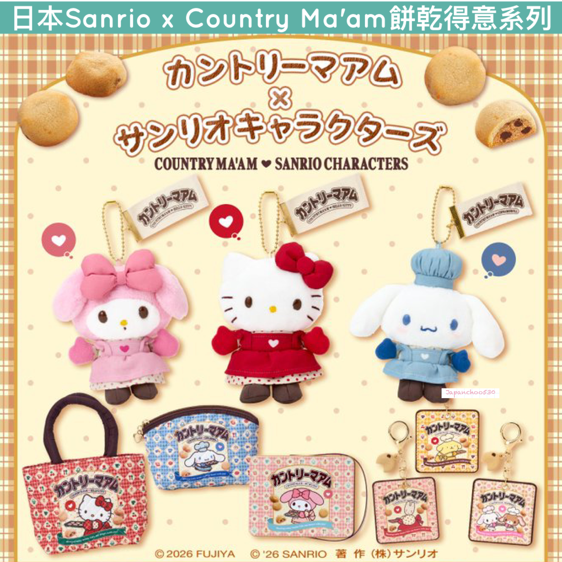 日本預訂📍日本Sanrio x Country Ma'am餅乾得意系列 - 公仔/化妝袋/手提袋/鎖匙扣 21/1日本開售