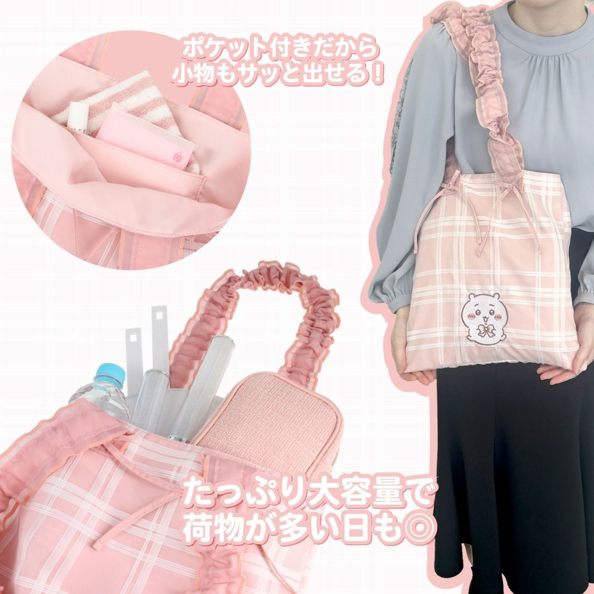 日本預訂📍Chiikawa蝴蝶格仔圖案系列 - 花邊Tote Bag